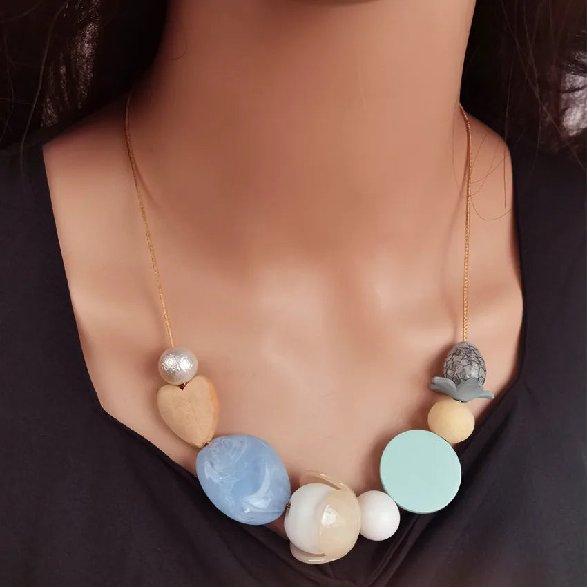 Women's Necklace Brown Wood Geometric Heart Pendant Retro